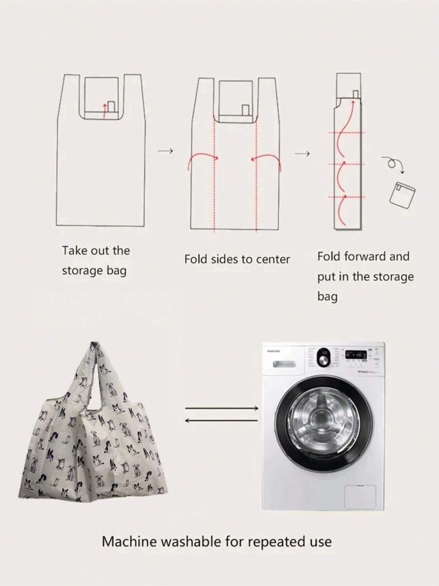 Cartoon Cat & Dog Themed Storage Bag, Large Capacity Foldable Tote Bag For Shopping