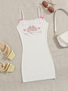 Cartoon & Slogan Graphic Cami Bodycon Dress