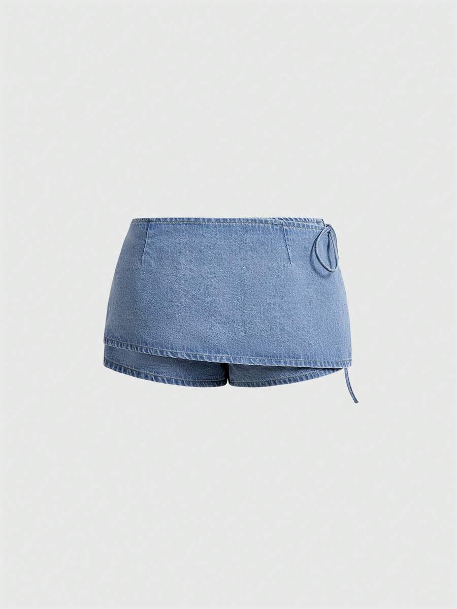 Casual Street Utility Wrap-Around Side Tie Light Blue Washed Denim Shorts