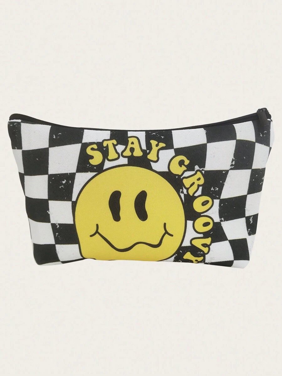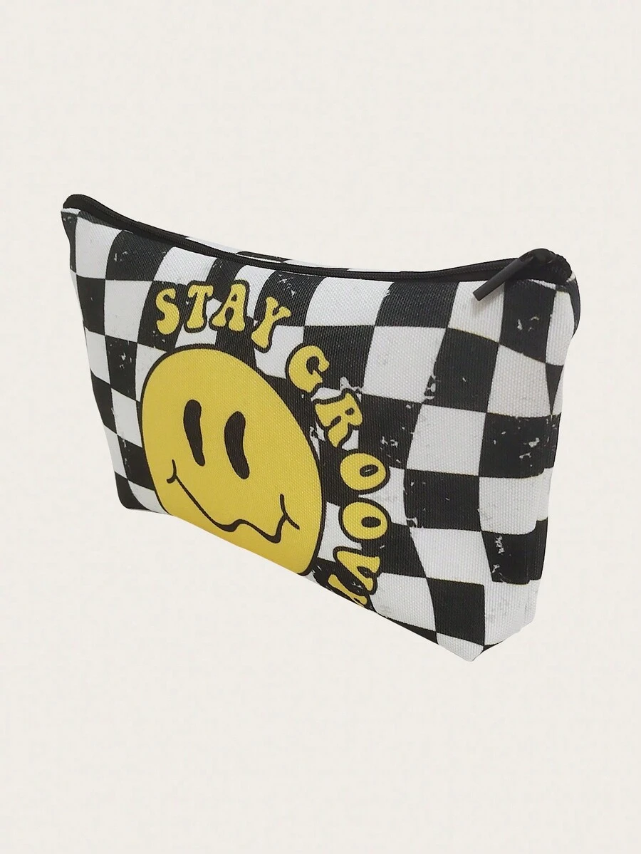 CoCoArtUa Grunge Punk Pattern No. 516967 1pc Black & White Plaid Yellow Smiling Face Makeup Bag