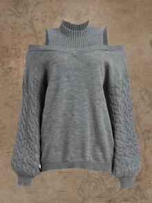 Cold Shoulder Lantern Sleeve Sweater