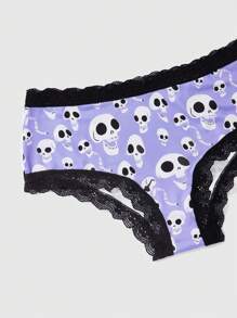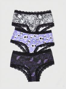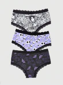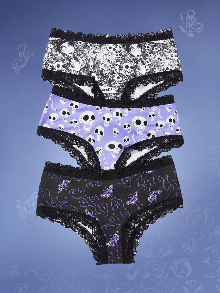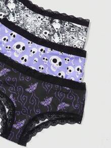 Corpse Bride | ROMWE 3pcs Spliced Lace Edge Cartoon Printed Underwear