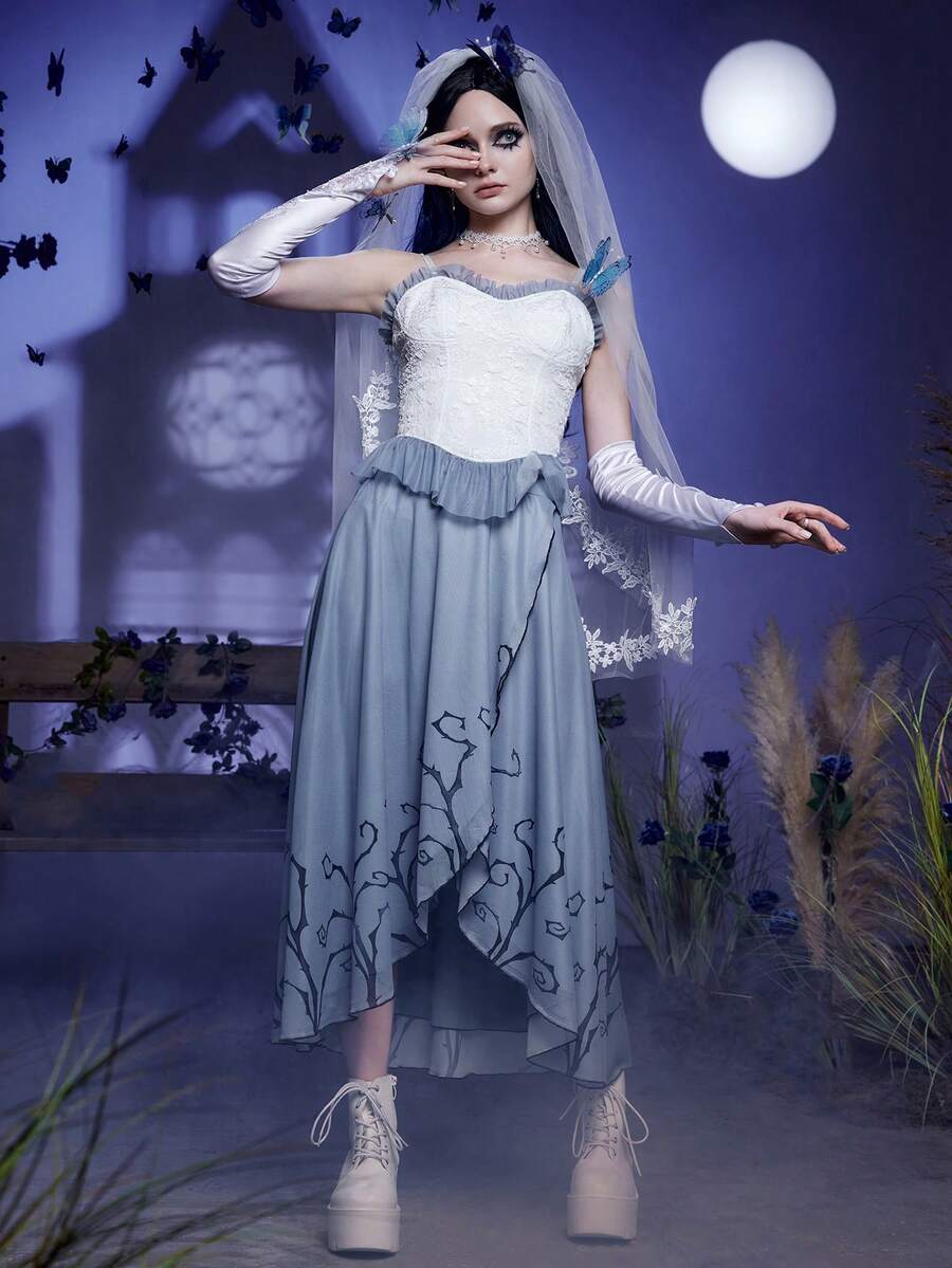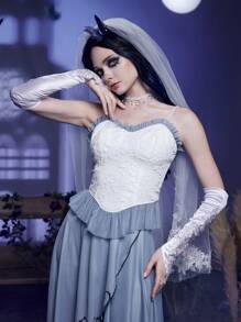 Corpse Bride | ROMWE Frill Trim Jacquard Bustier Cami Top