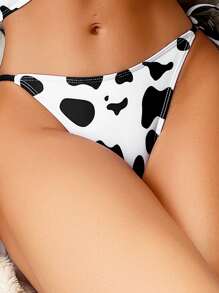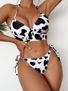 Cow Print Wrap Halter Tie Side Bikini Set For Summer Beach