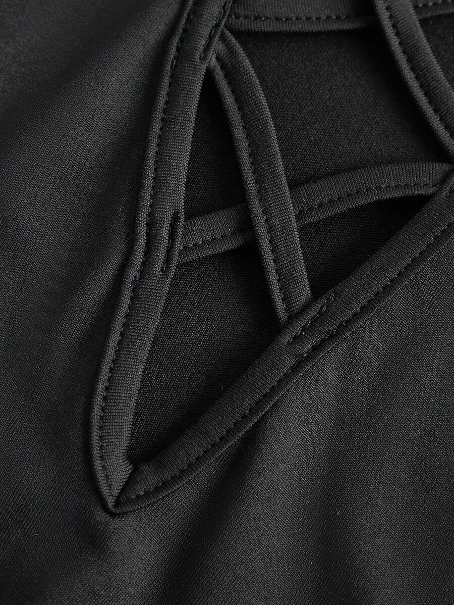 Crisscross Front Contrast Lace Flounce Sleeve Bodycon Dress