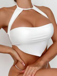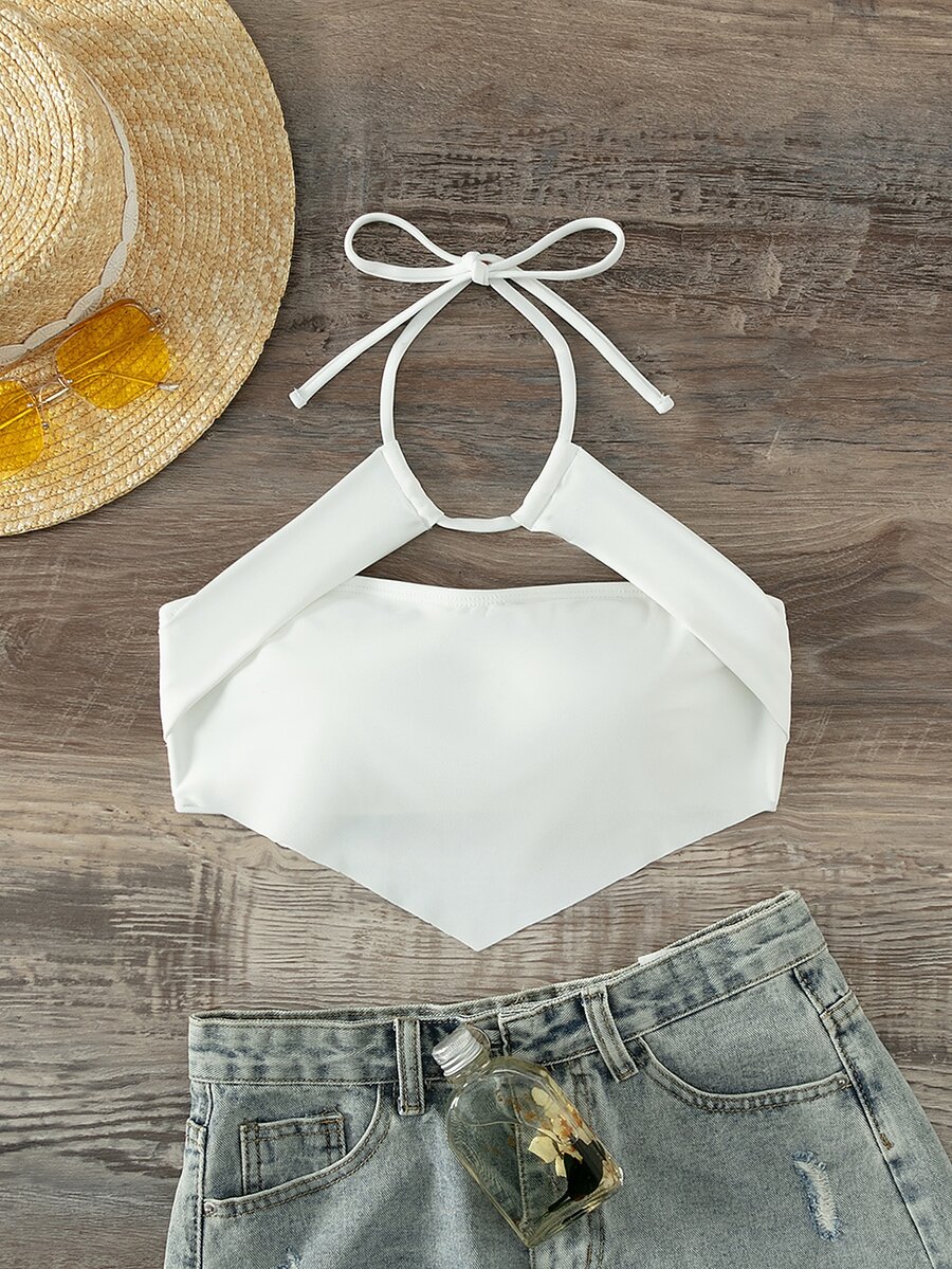 Cut Out Hanky Hem Halter Bikini Top