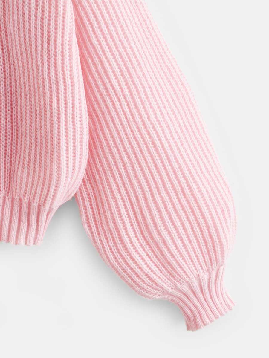 Cute Moon Embroidery Pattern Turtleneck Lantern Sleeve Sweater