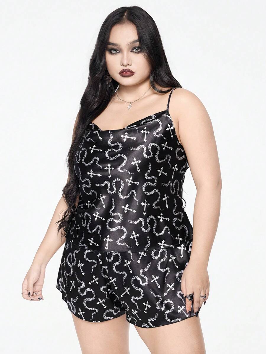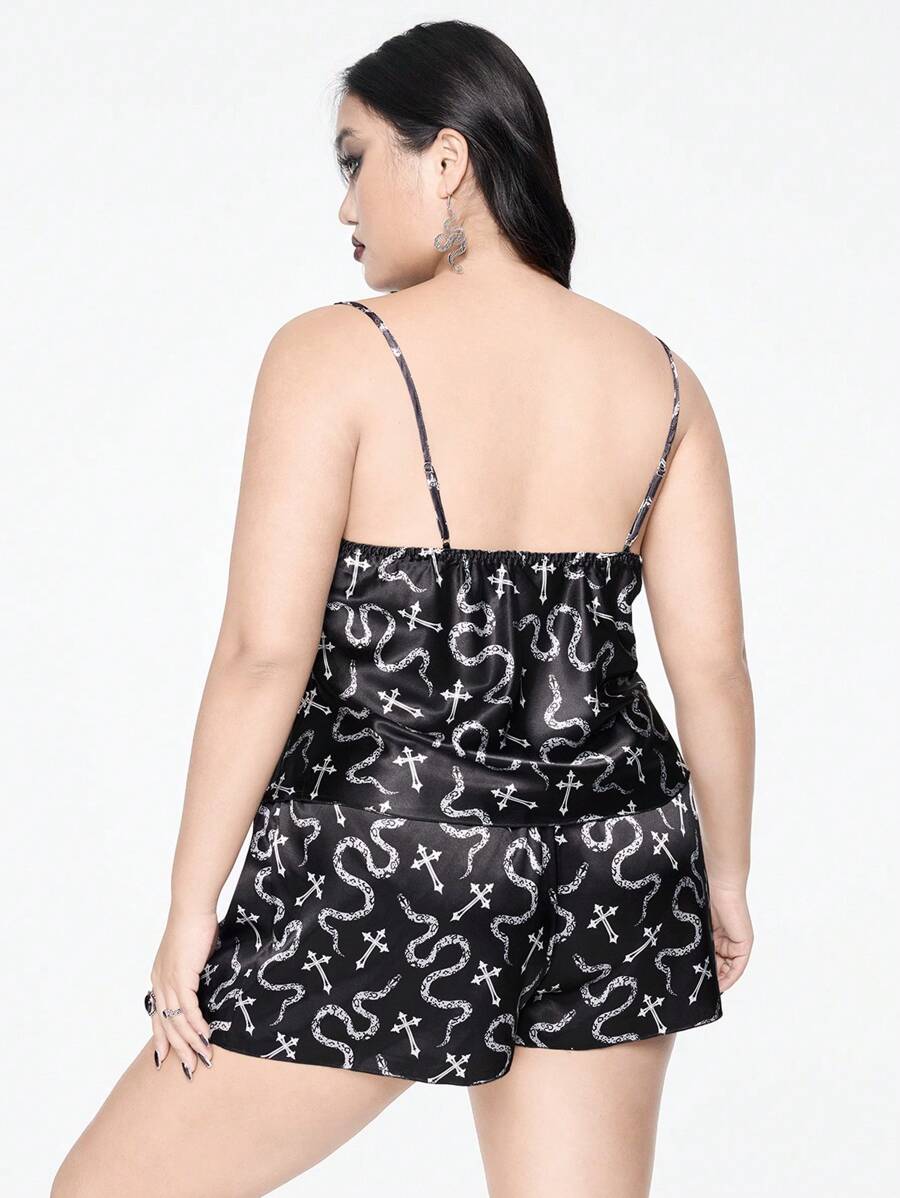 Dark Gothic Cross & Snake Pattern Satin Camisole Shorts Pajama Set