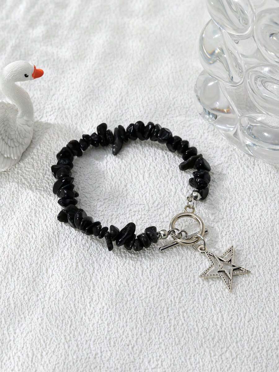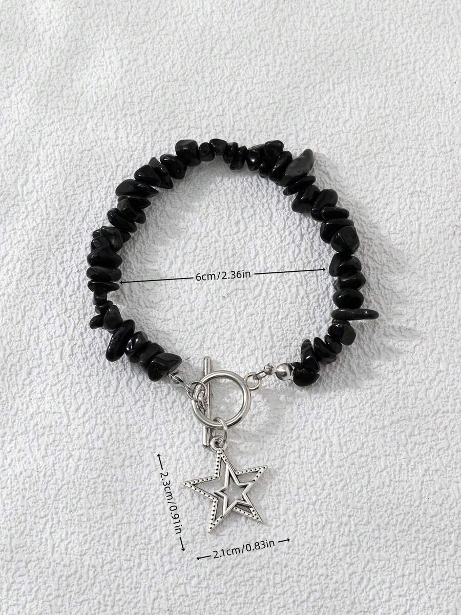 Delicate Black Crystal Pentagram Pendant Bracelet
