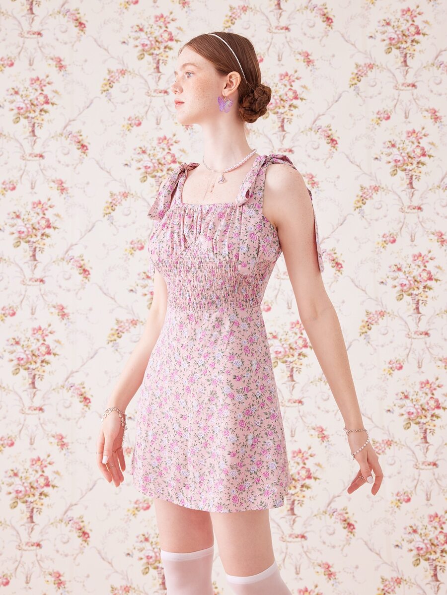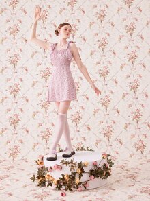 Kawaii Ditsy Floral Ruched Bust Cami Dress