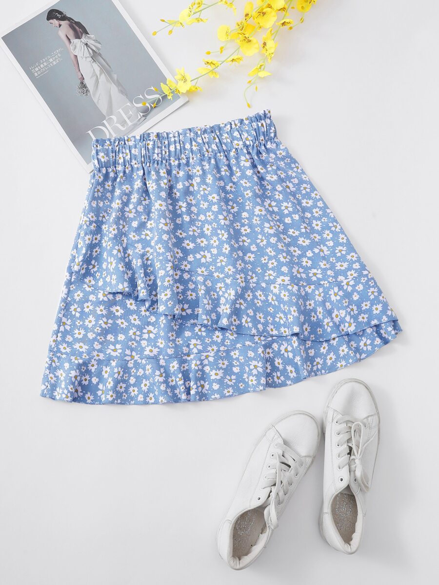 Ditsy Floral Ruffle Hem A-line Skirt