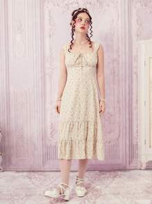 Ditsy Floral Tie Front Ruffle Hem Cami Dress