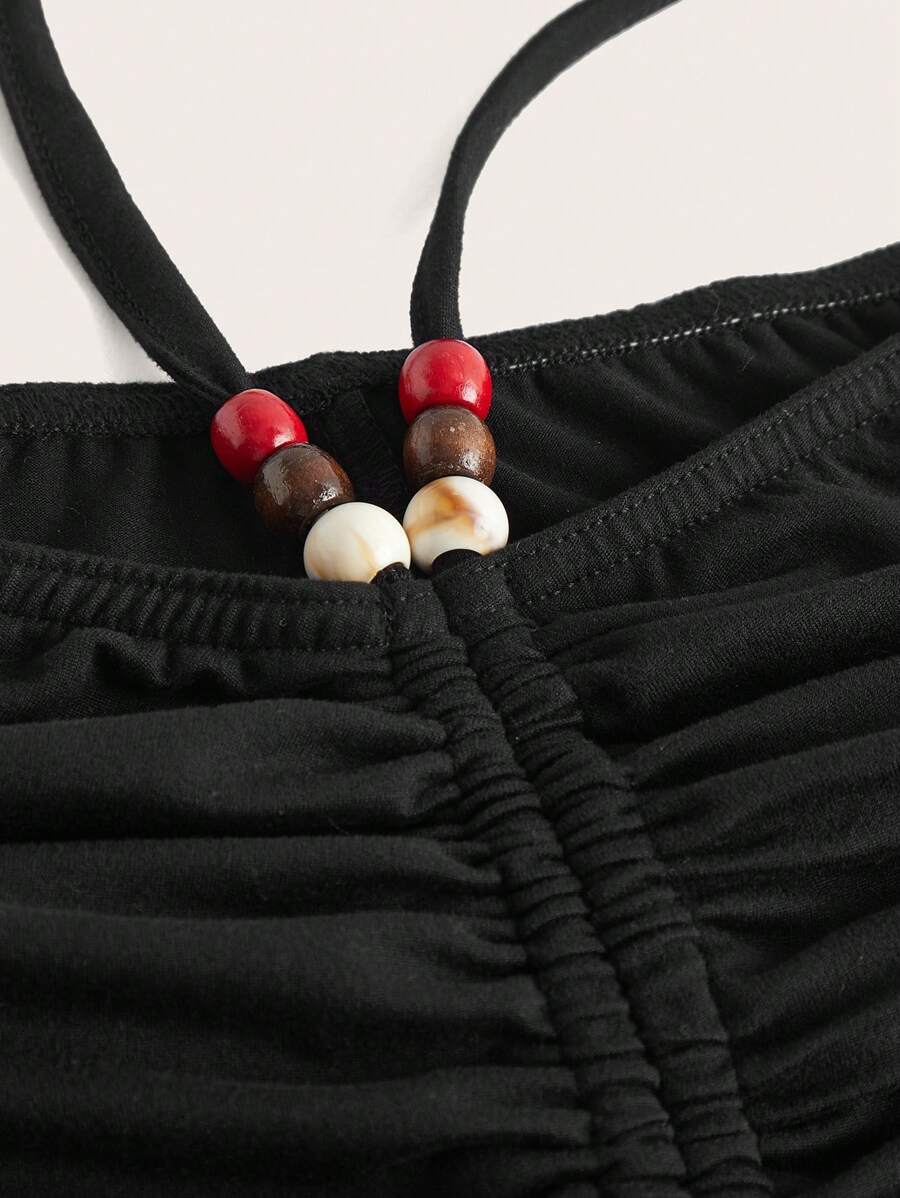 Drawstring Ruched Criss Cross Tie Back Biker Shorts