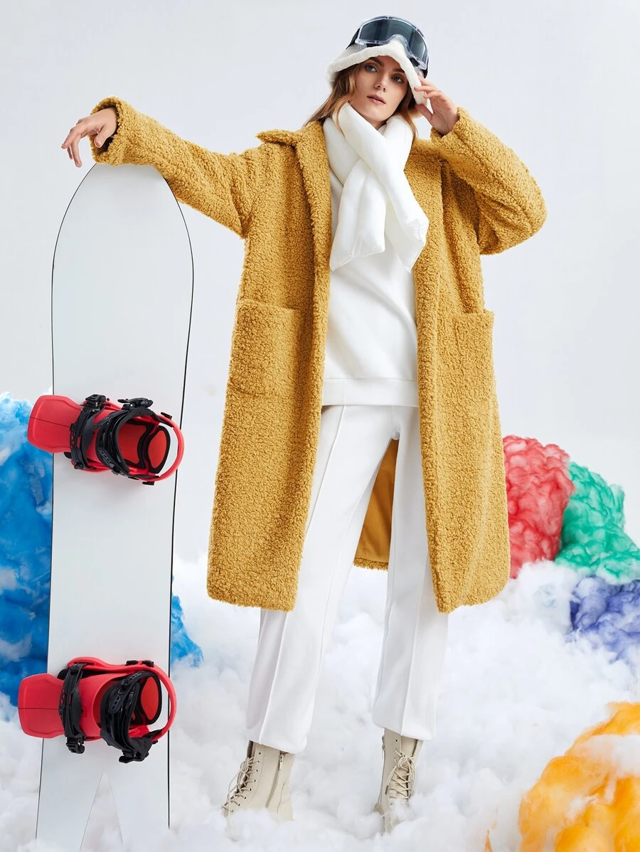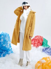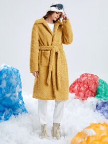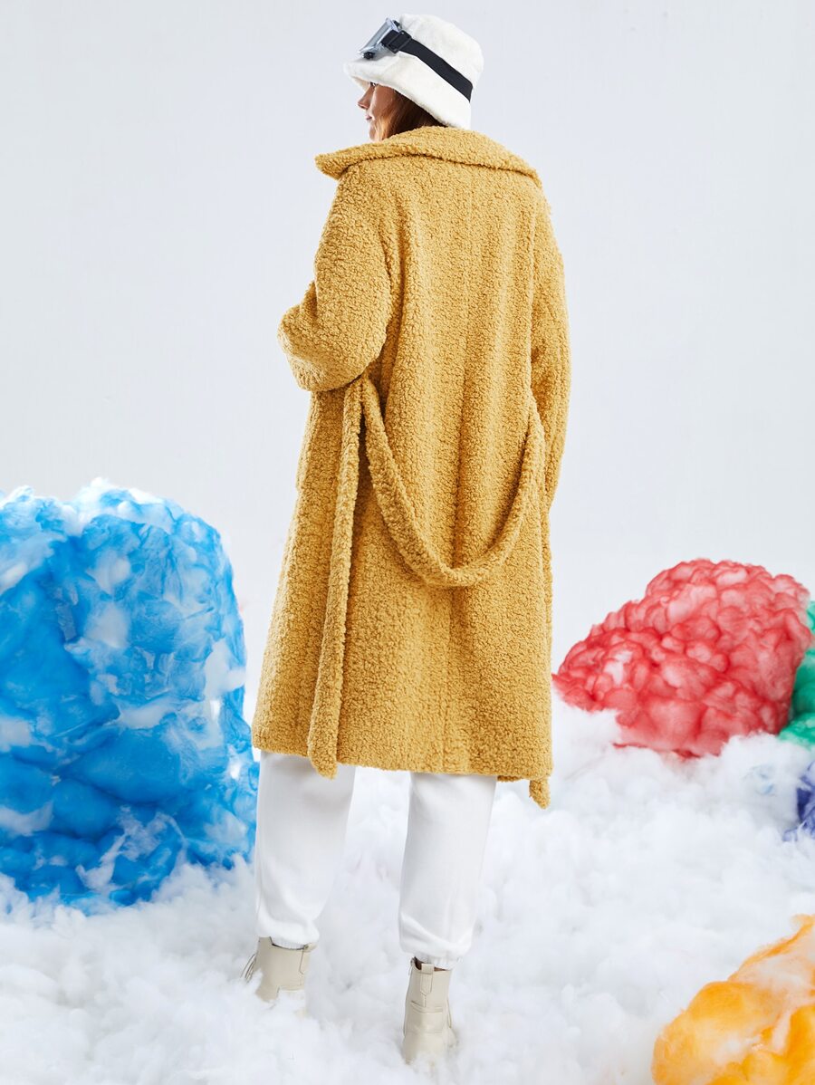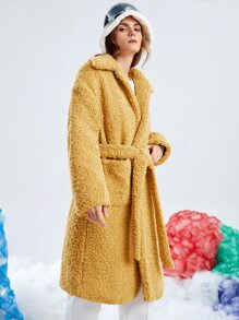 Drop Shoulder Belted Teddy Coat