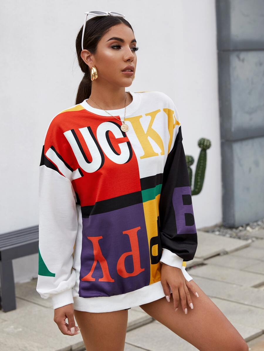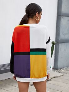 Drop Shoulder Letter Graphic Colorblock Pullover