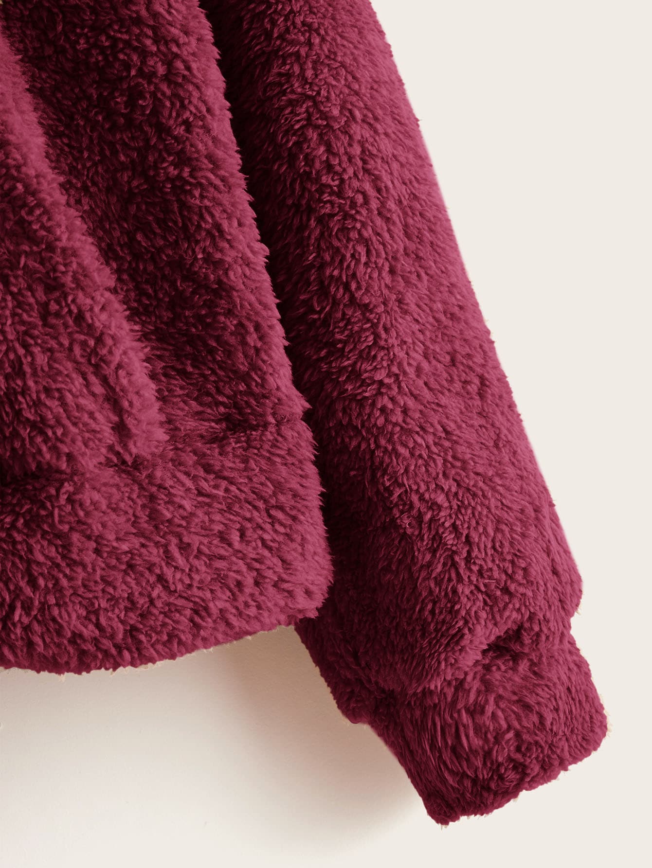 Drop Shoulder Patch Pocket Teddy Drawstring Hoodie