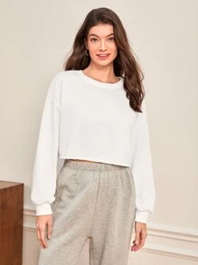 Drop Shoulder Solid Crop Pullover