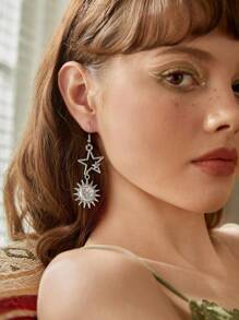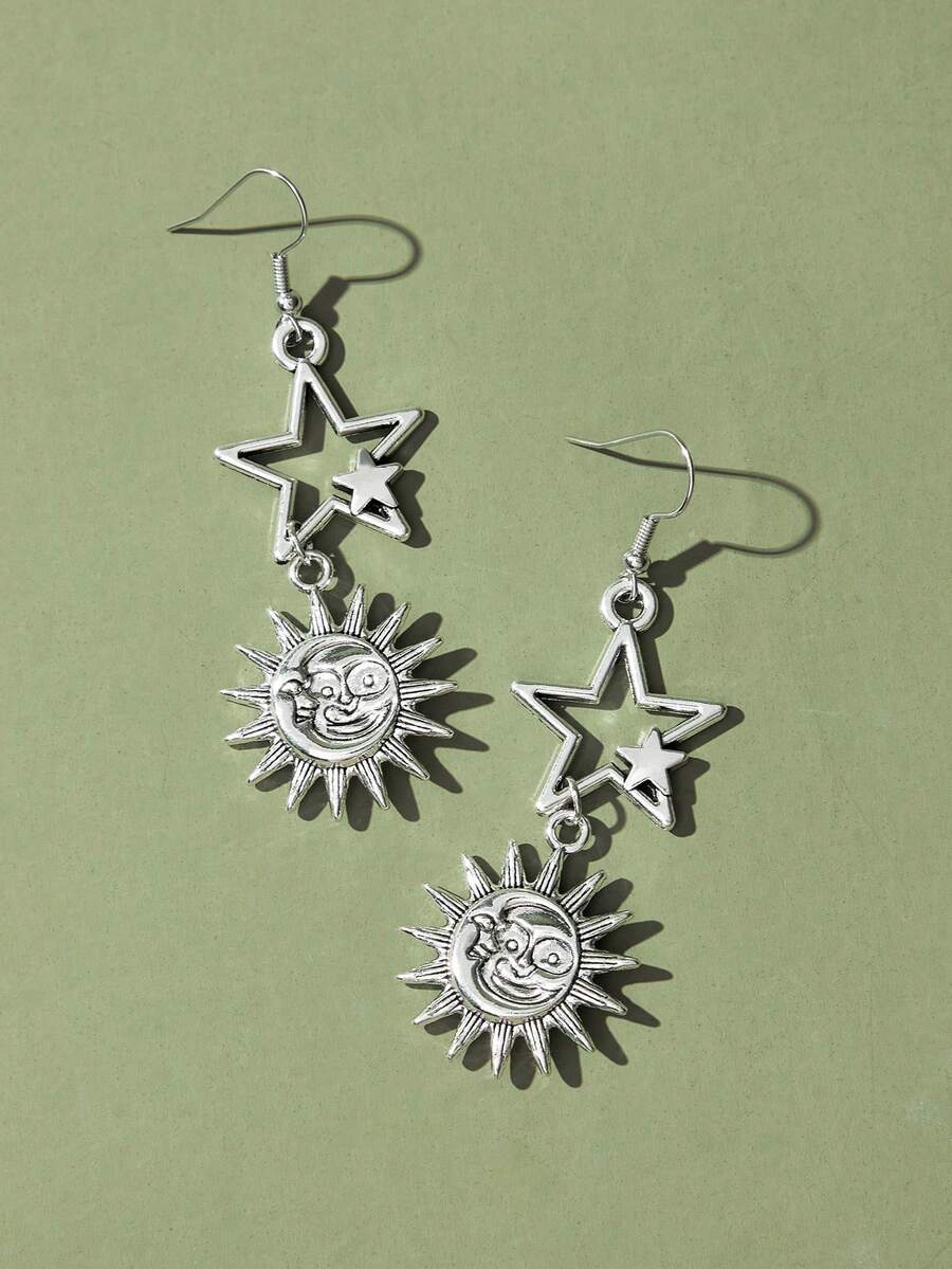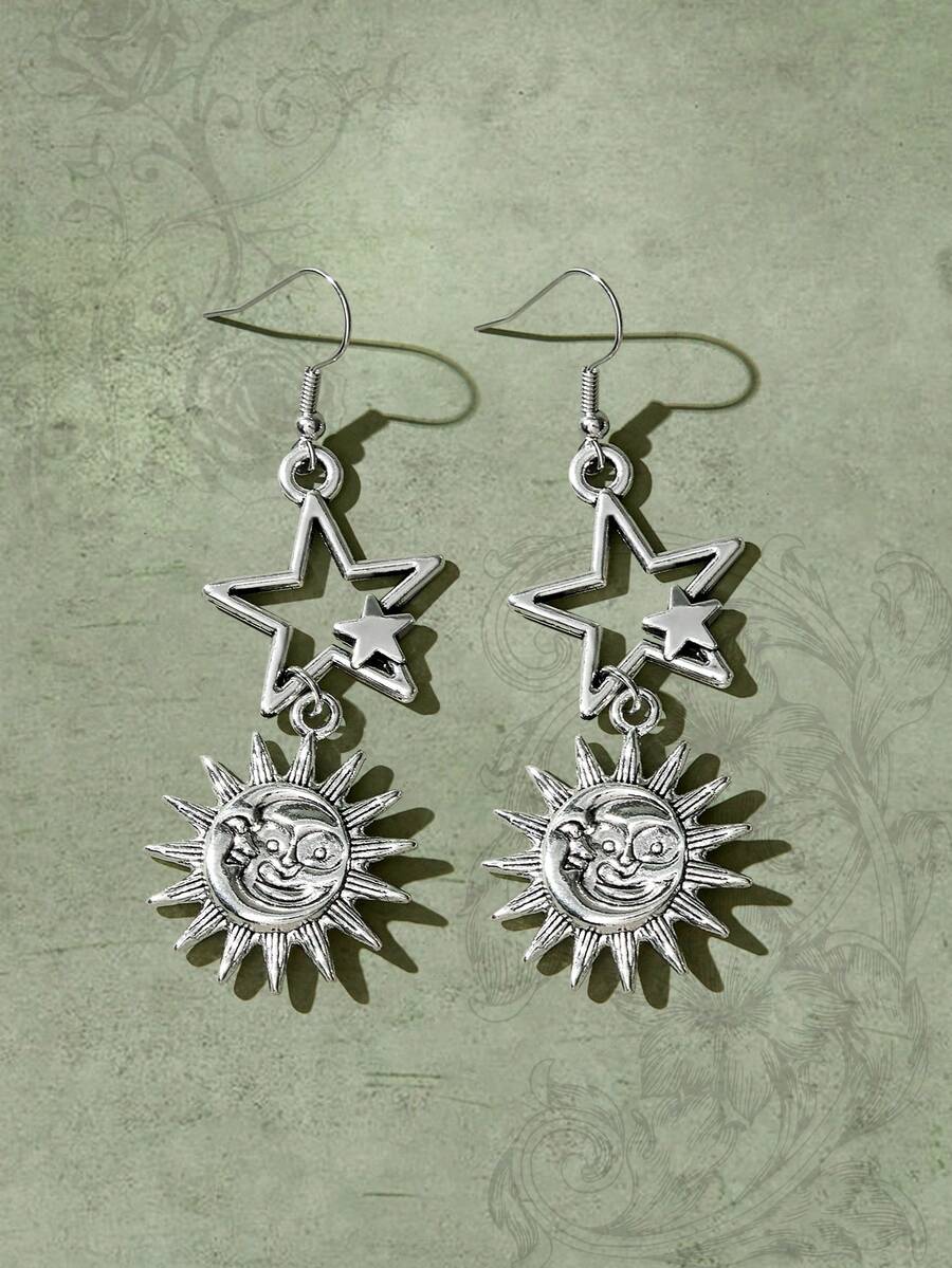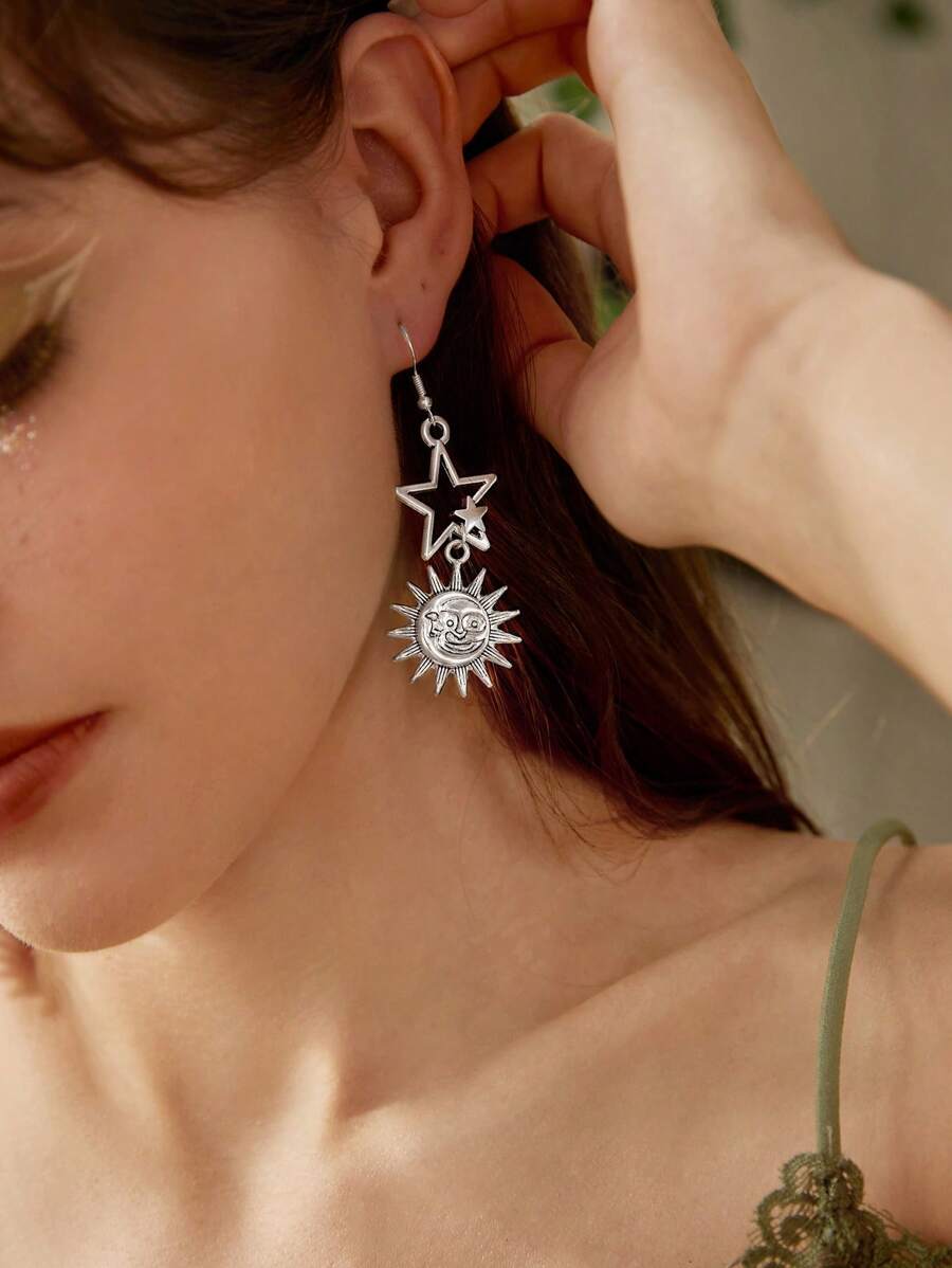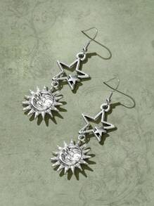 Fairycore 1pair Fashion Iron Alloy Sun & Moon Drop Earrings For Women For Daily Decoration