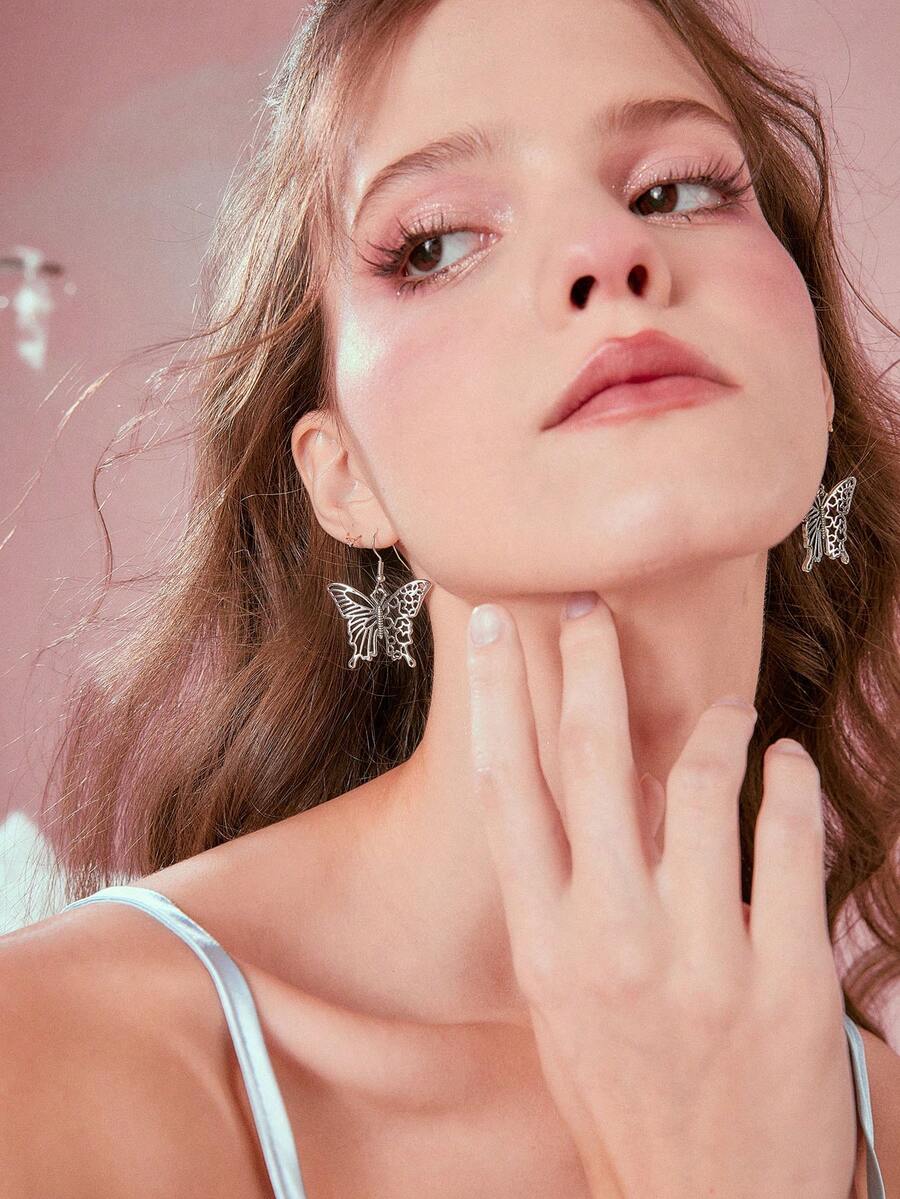 Fairycore 1pair Fashion Zinc Alloy Butterfly Drop Earrings For Women For Daily Decoration