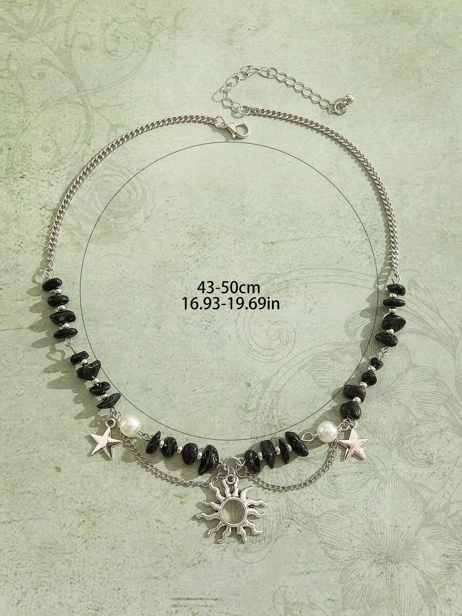 Fairycore 1pc Fashion Sun & Star Decor Beaded Necklace For Women For Daily Decoration