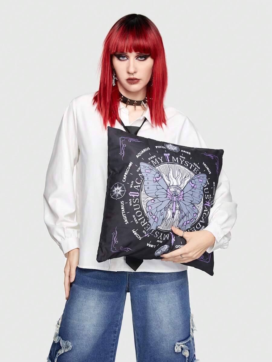 Fairycore 1pc Letter Butterfly Print Cushion Cover Without Filler,Casual Washable Decorative Square Pillowcase