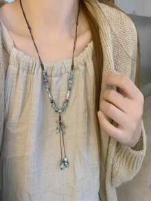 Fairycore 1pc Random Color Beaded Necklace With Butterfly Pendant