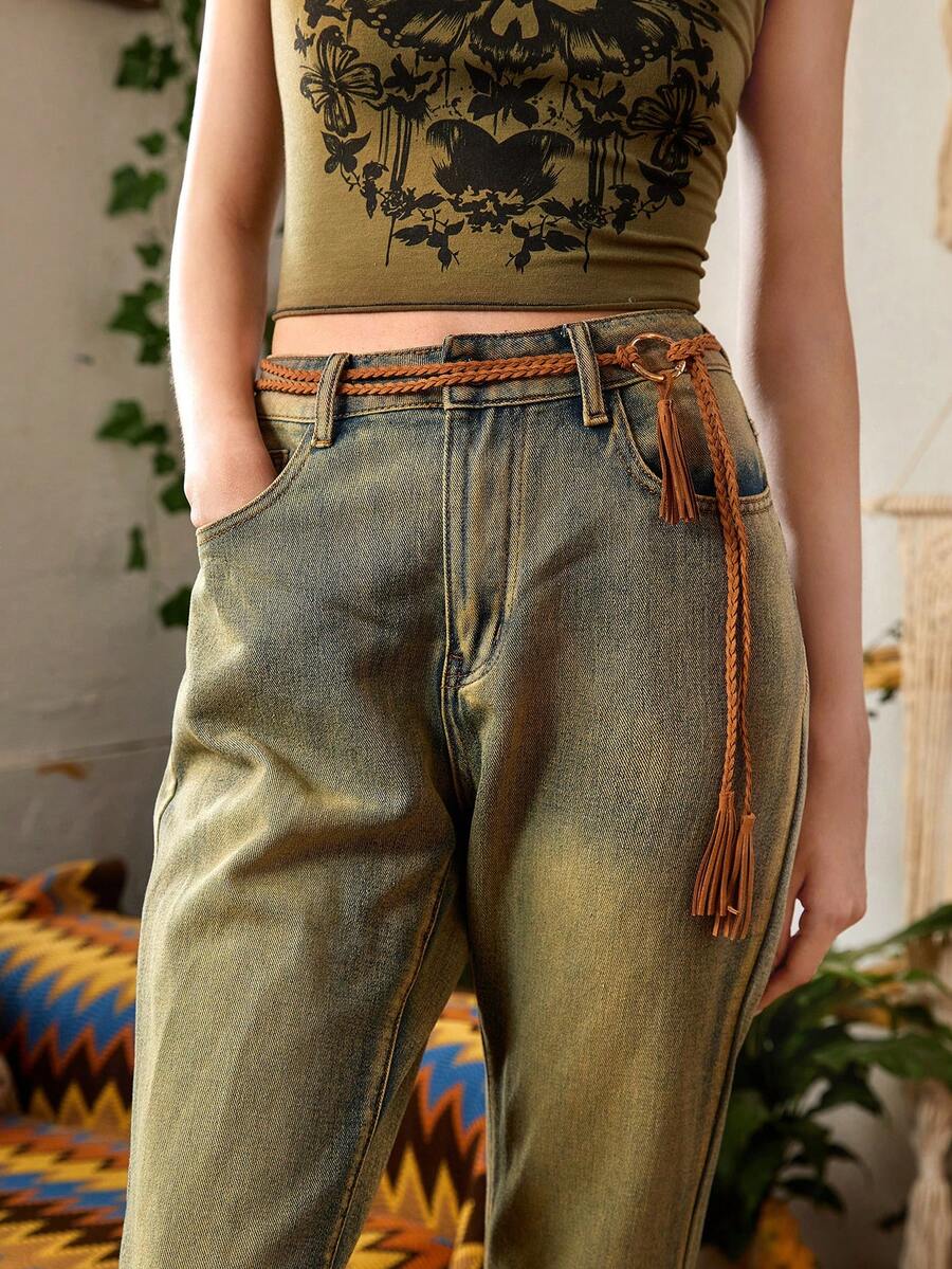 Fairycore 1pc Women Solid Ring & Tassel Belt