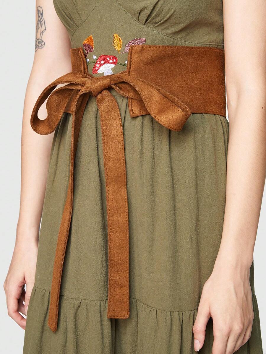 Fairycore 1pc Women's Brown Suede Cord Belt For Daily Wear, Mori Style