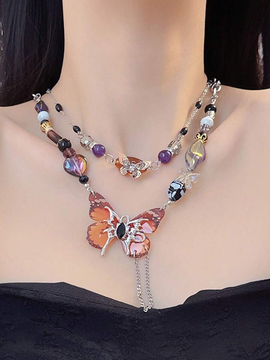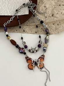 Fairycore 1pc Women's Purple Butterfly Pendant Necklace