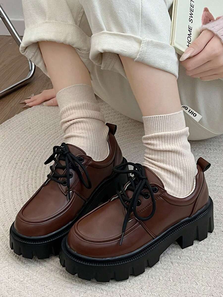 Fairycore 2023 Autumn New Arrival Retro Japanese & British Style Thick Bottom Loafers, Brown