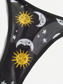 Fairycore 3pack Sun & Moon Print Contrast Binding Thong