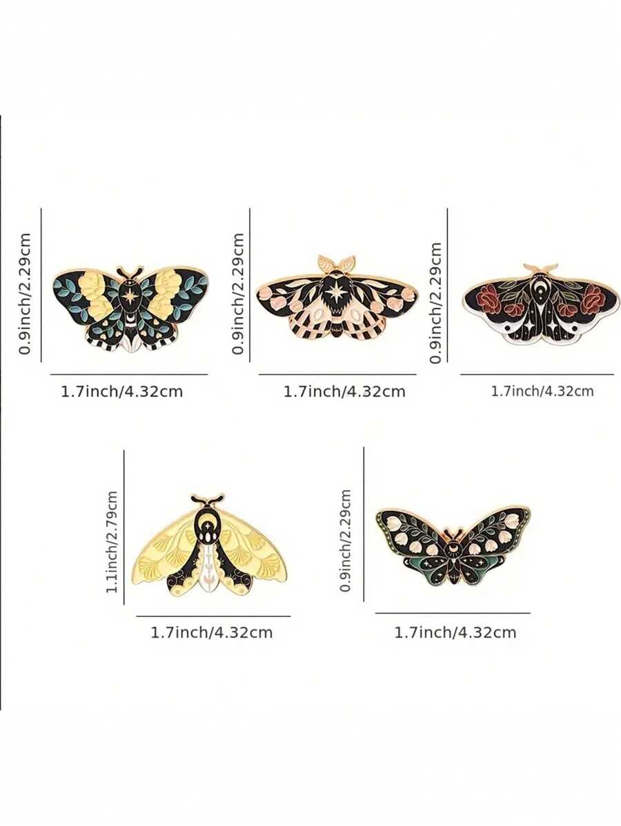 Fairycore 5pcs Boho Zinc Alloy Butterfly Design Brooch For Women For Daily Decoration