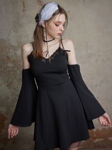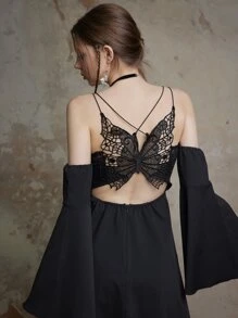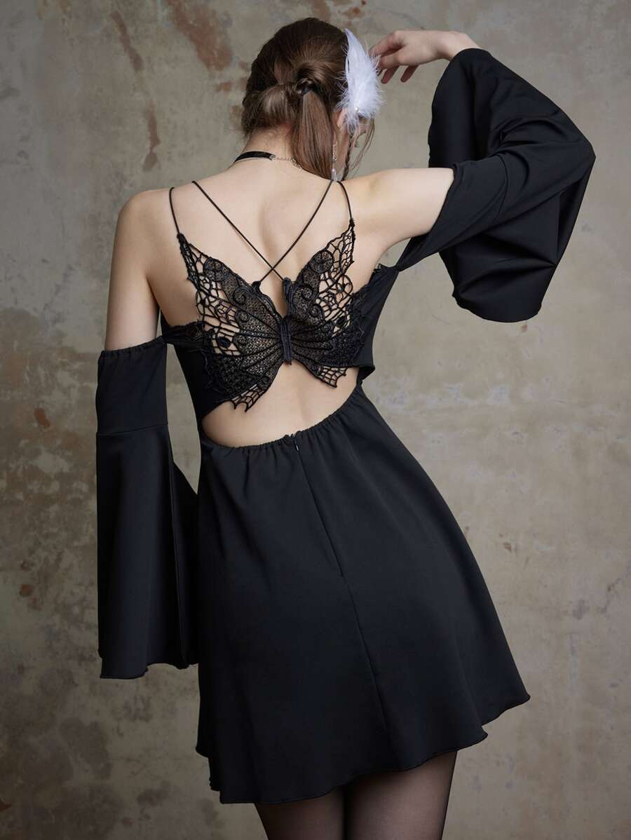 Fairycore Butterfly Appliques Cut Out Backless Cold Shoulder Dress
