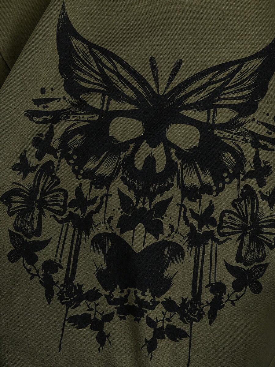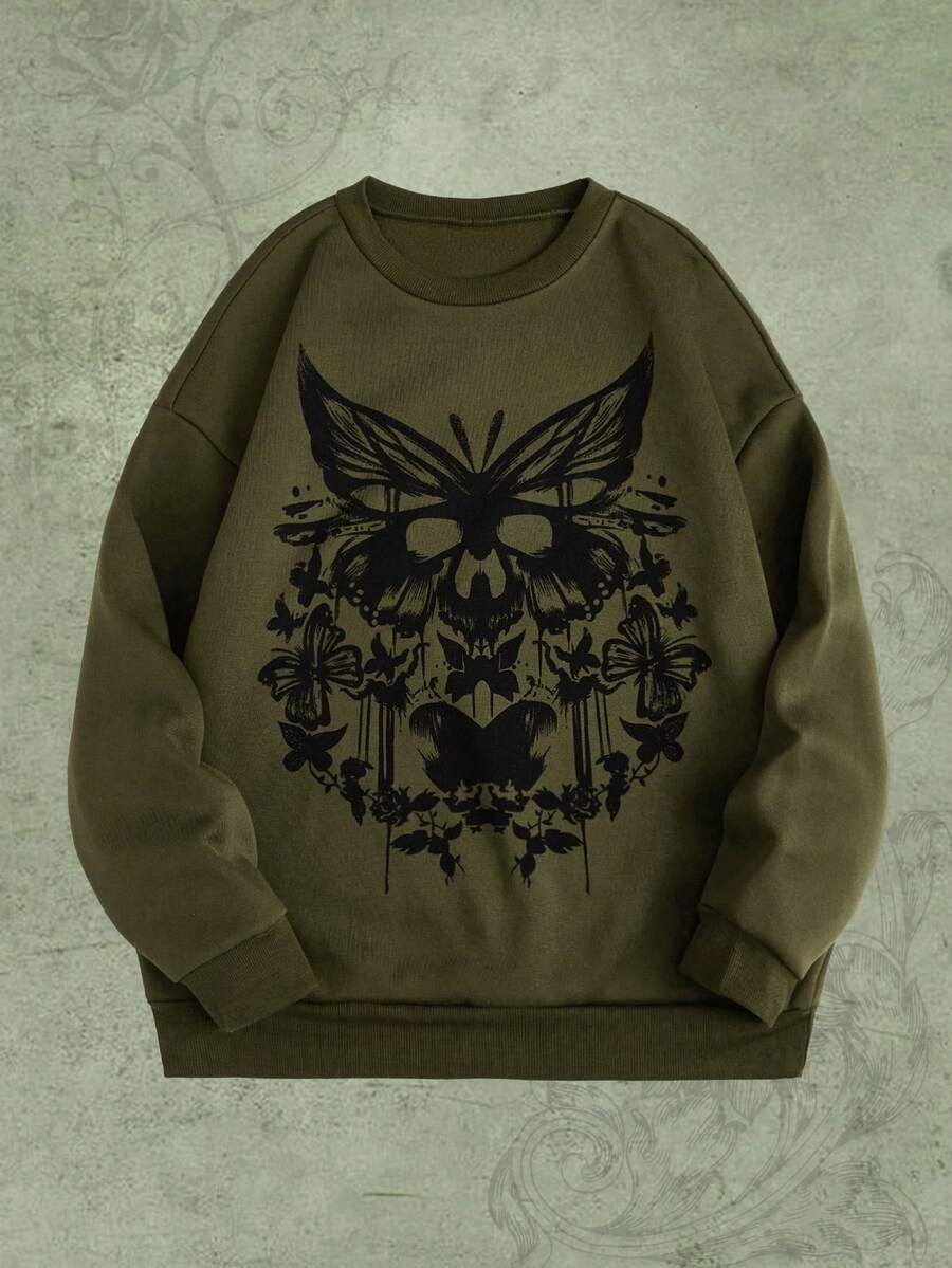 Fairycore Butterfly & Skull Graphic Thermal Lined Sweatshirt