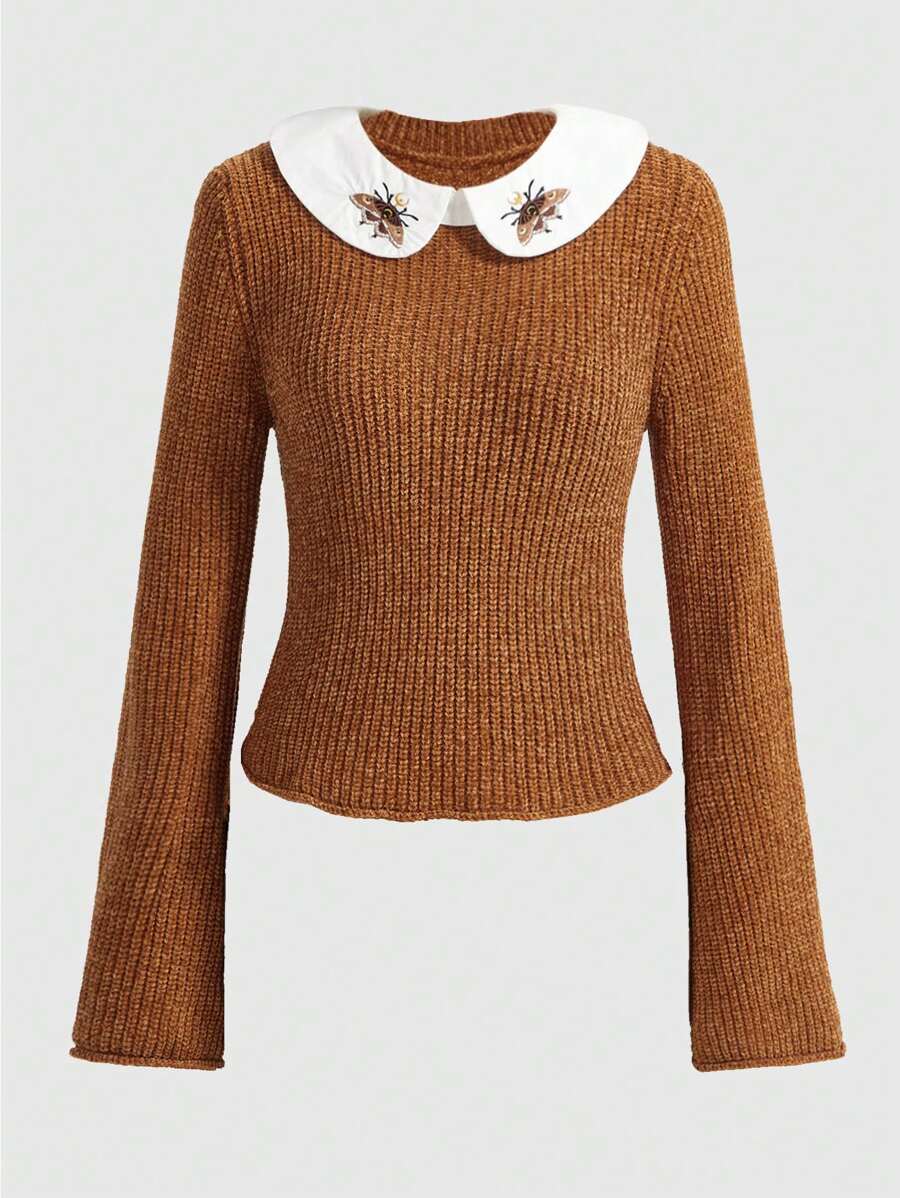 Fairycore Contrast Collar Flare Sleeve Sweater