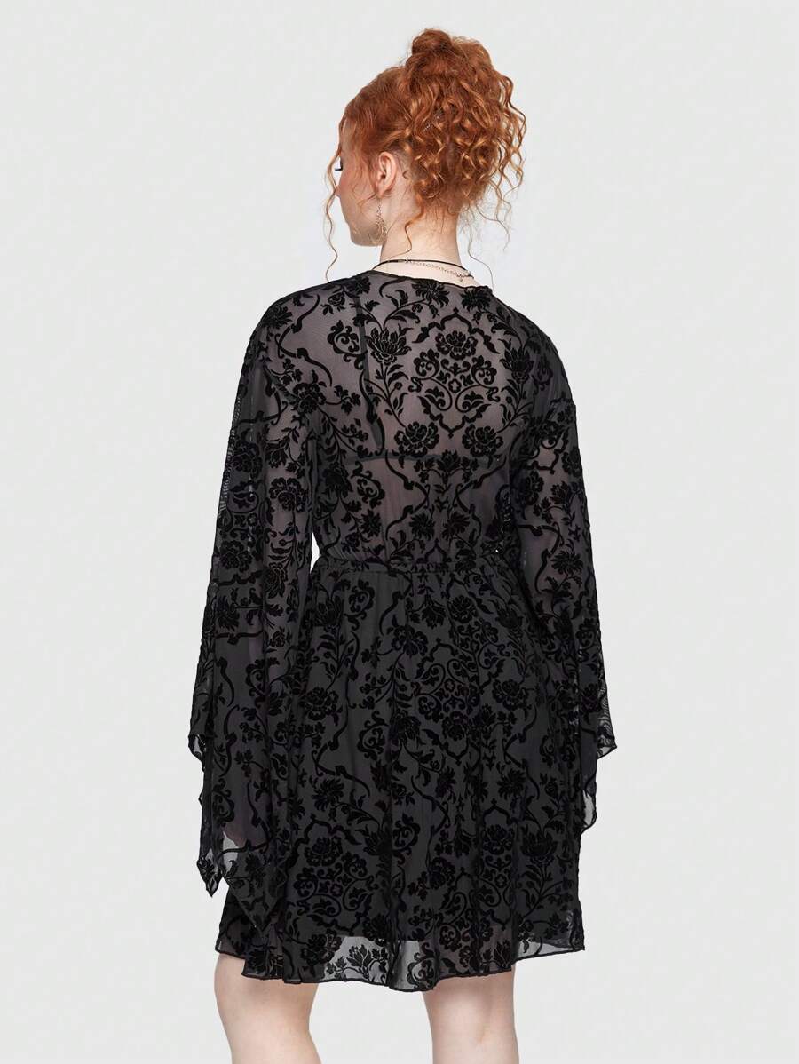 Fairycore Floral Print Bell Sleeve Tie Front Dress