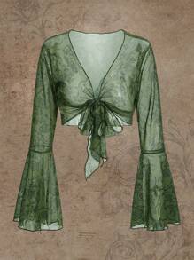 Hippie Floral Print Tie Front Flounce Sleeve Crop Top