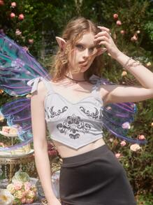 Fairycore Graphic Print Tie Shoulder Cami Top