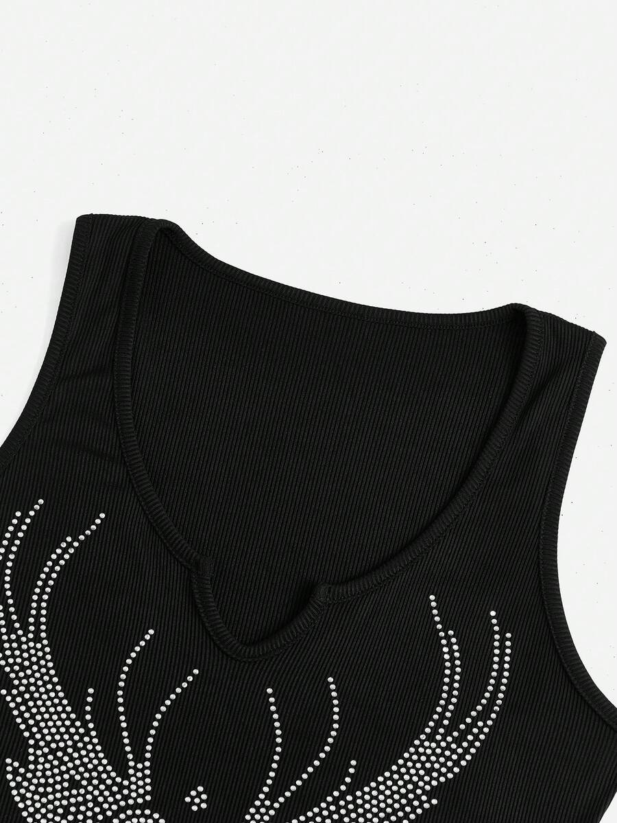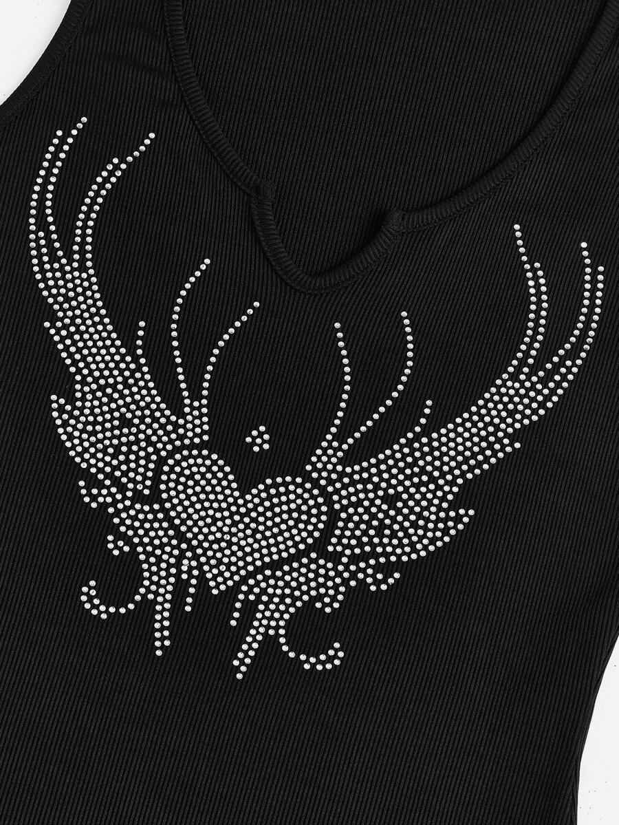 Fairycore Heart & Wings Graphic Rhinestone Decor Notched Neck Dress