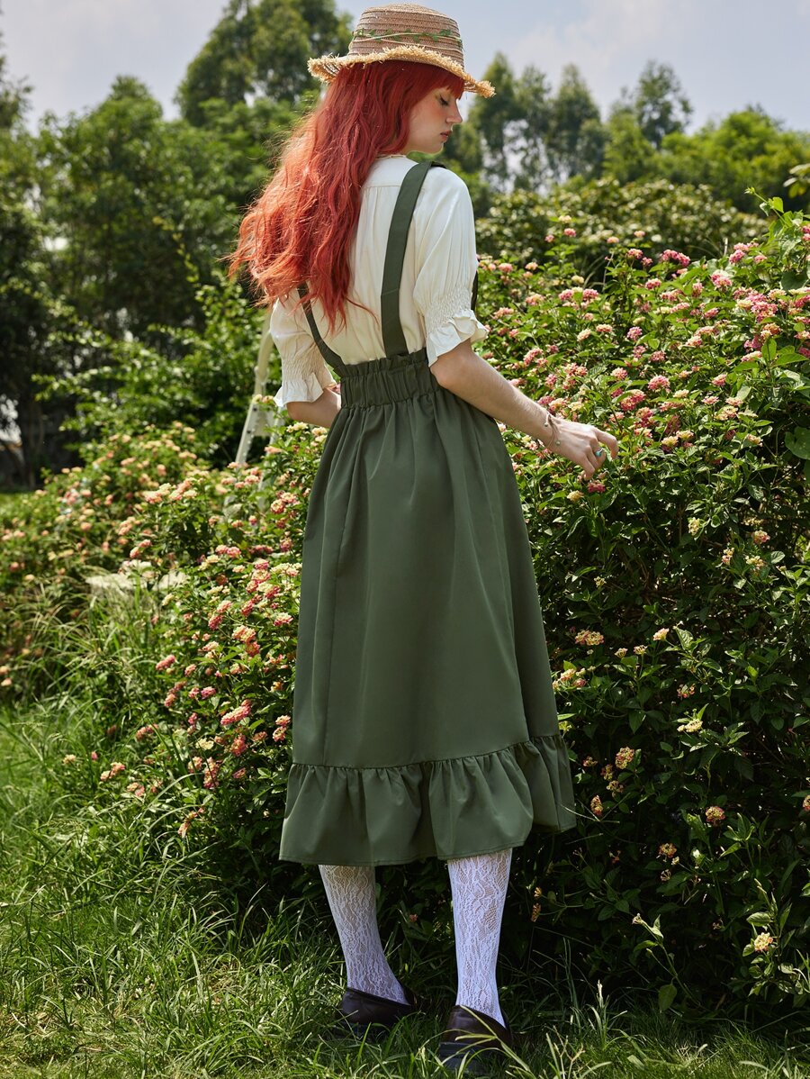 Fairycore Lace Up Ruffle Hem Pinafore Skirt