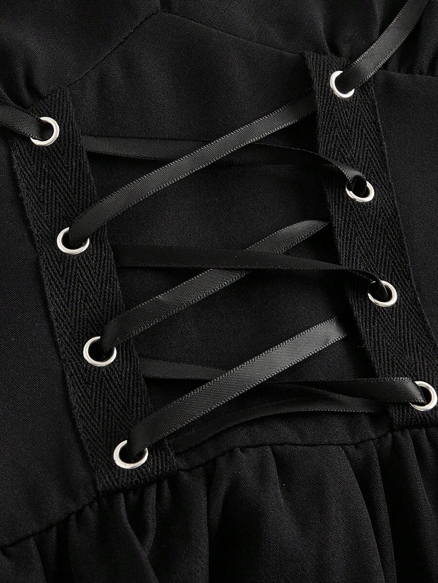 Fairycore Mushroom Embroidery Bowknot Belt Asymmetrical Hem Dress With Ruffle Trim