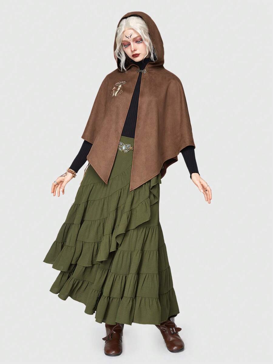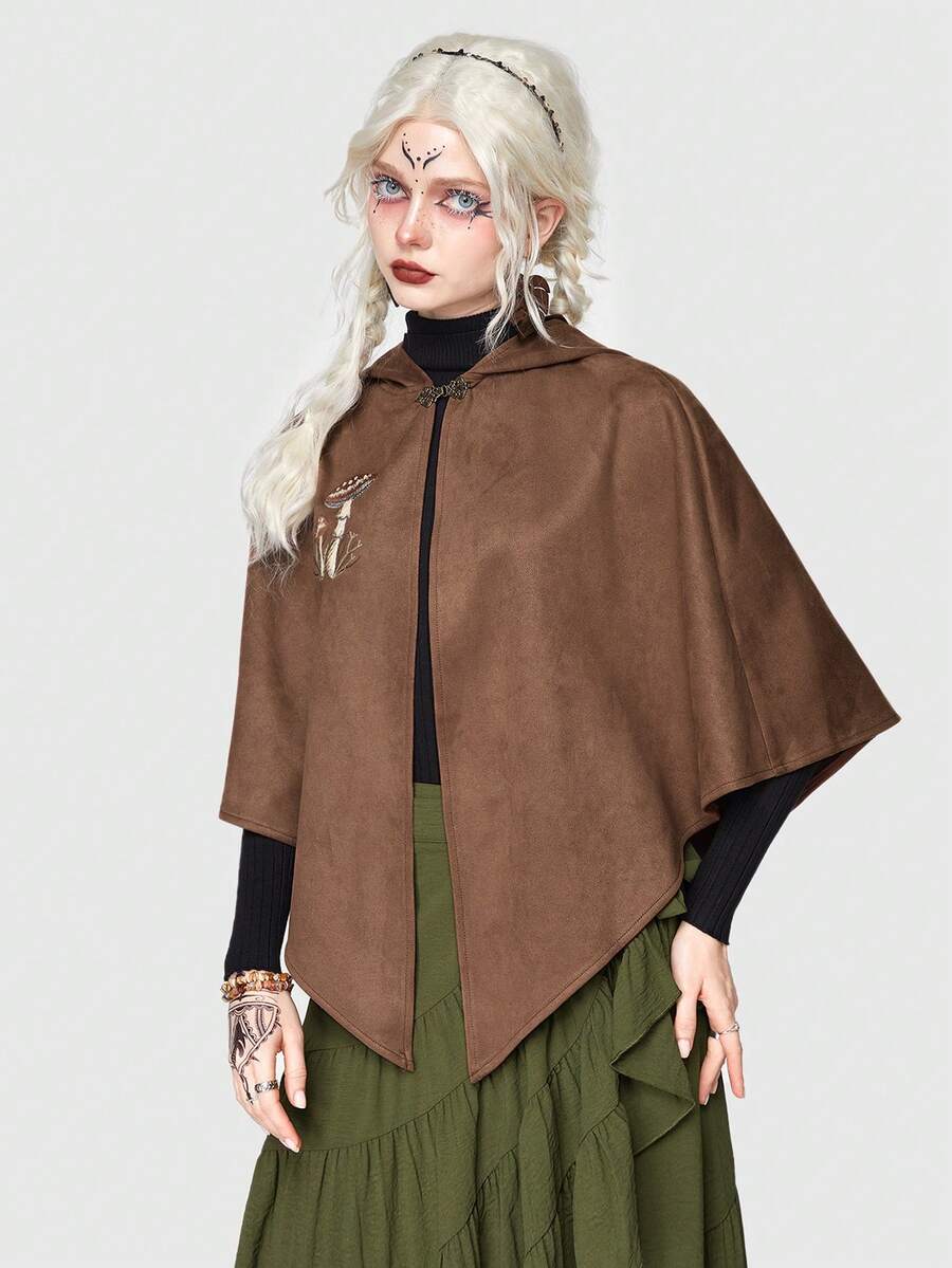 Fairycore Mushroom Embroidery Hooded Cape Coat