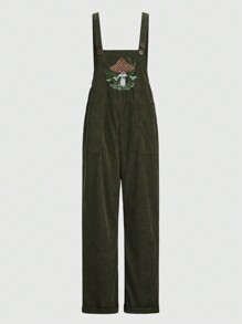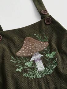 Fairycore Mushroom Embroidery Pocket Front Overall Jumpsuit
