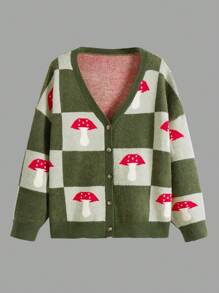 Fairycore Mushroom Patchwork Plus Size Women's Cardigan