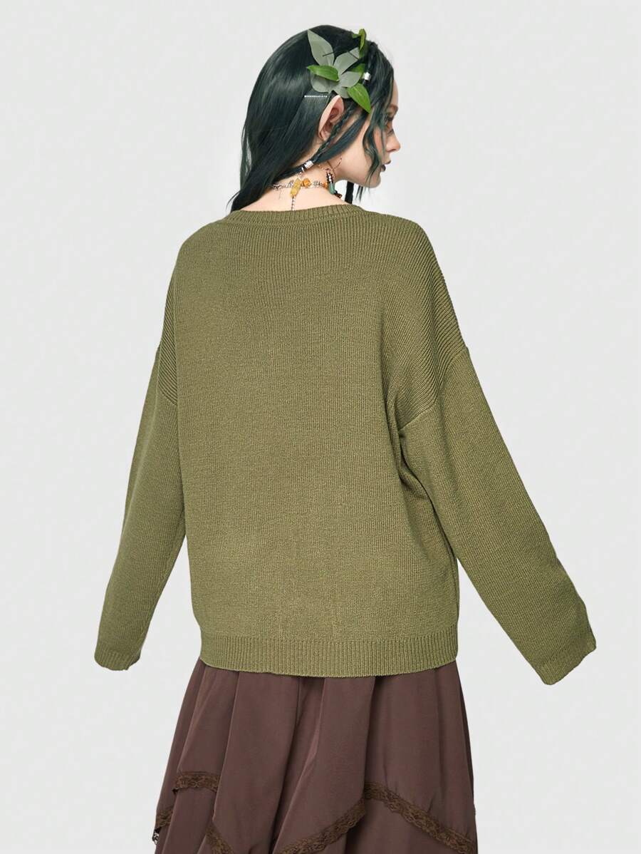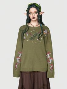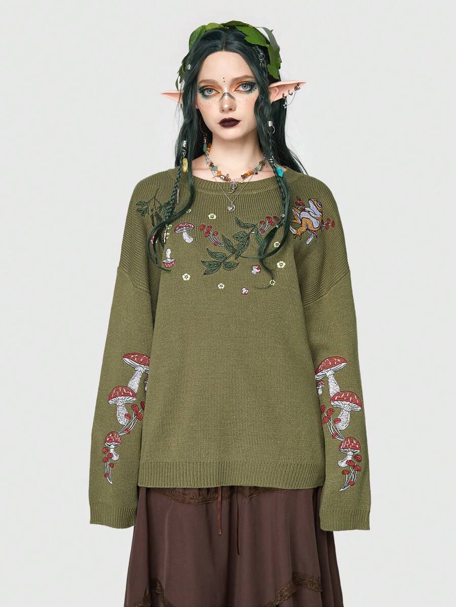 Fairycore Mushroom Pattern Drop Shoulder Sweater