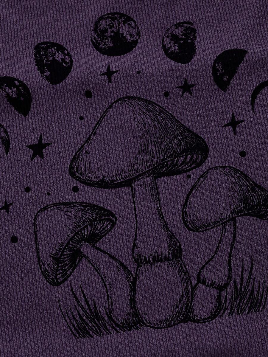 Fairycore Mushroom Print Contrast Lace Cami Top