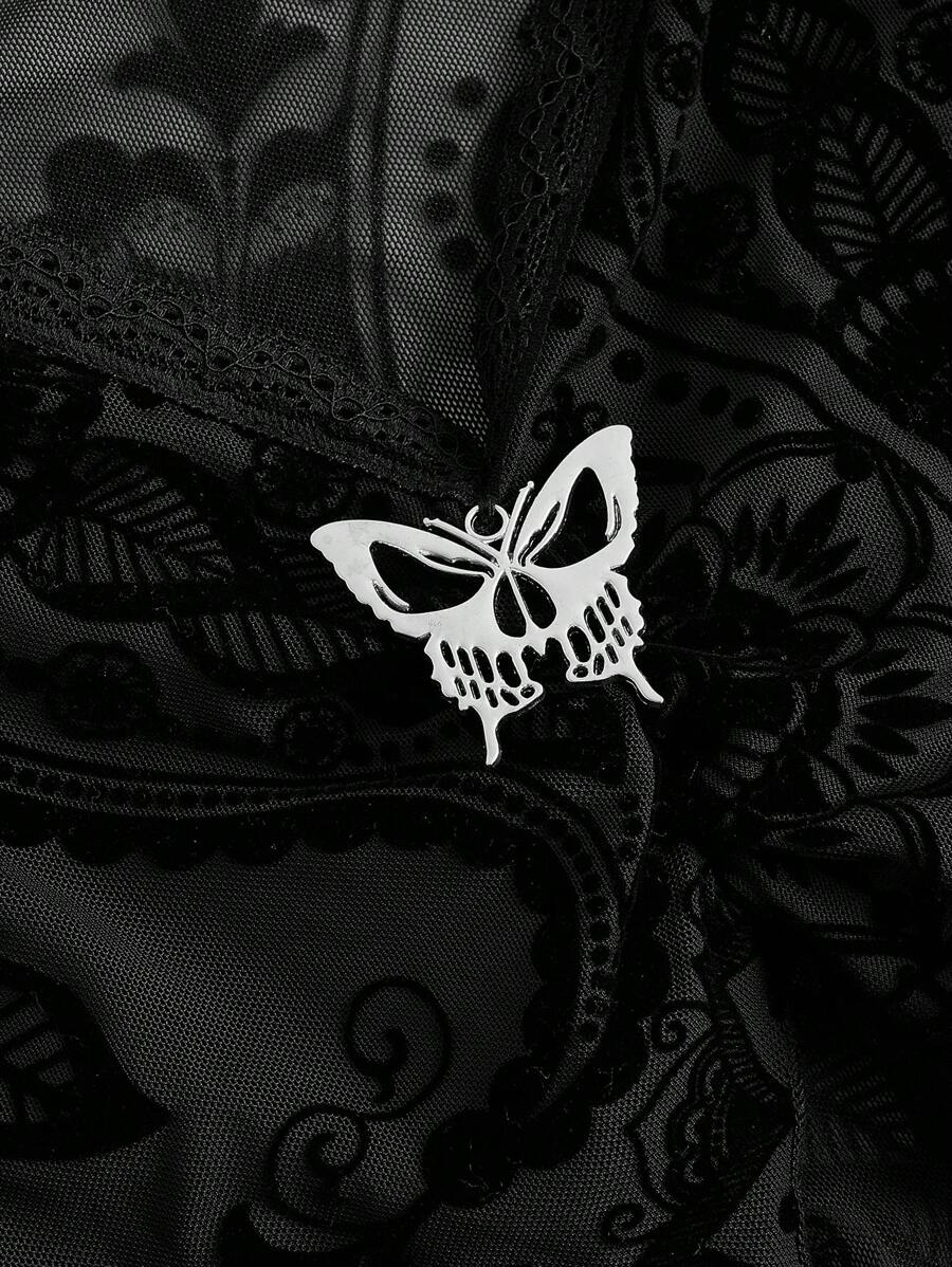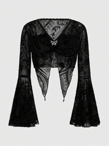 Fairycore Paisley Print Flare Sleeve Asymmetrical Hem Mesh Top