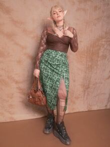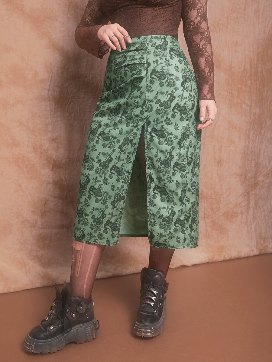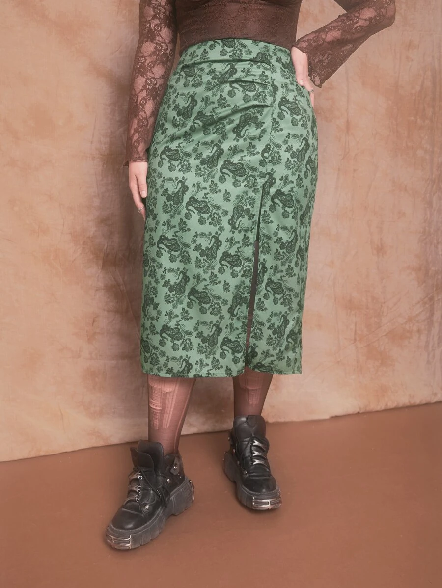 Fairycore Plus Paisley Print Split Thigh Skirt