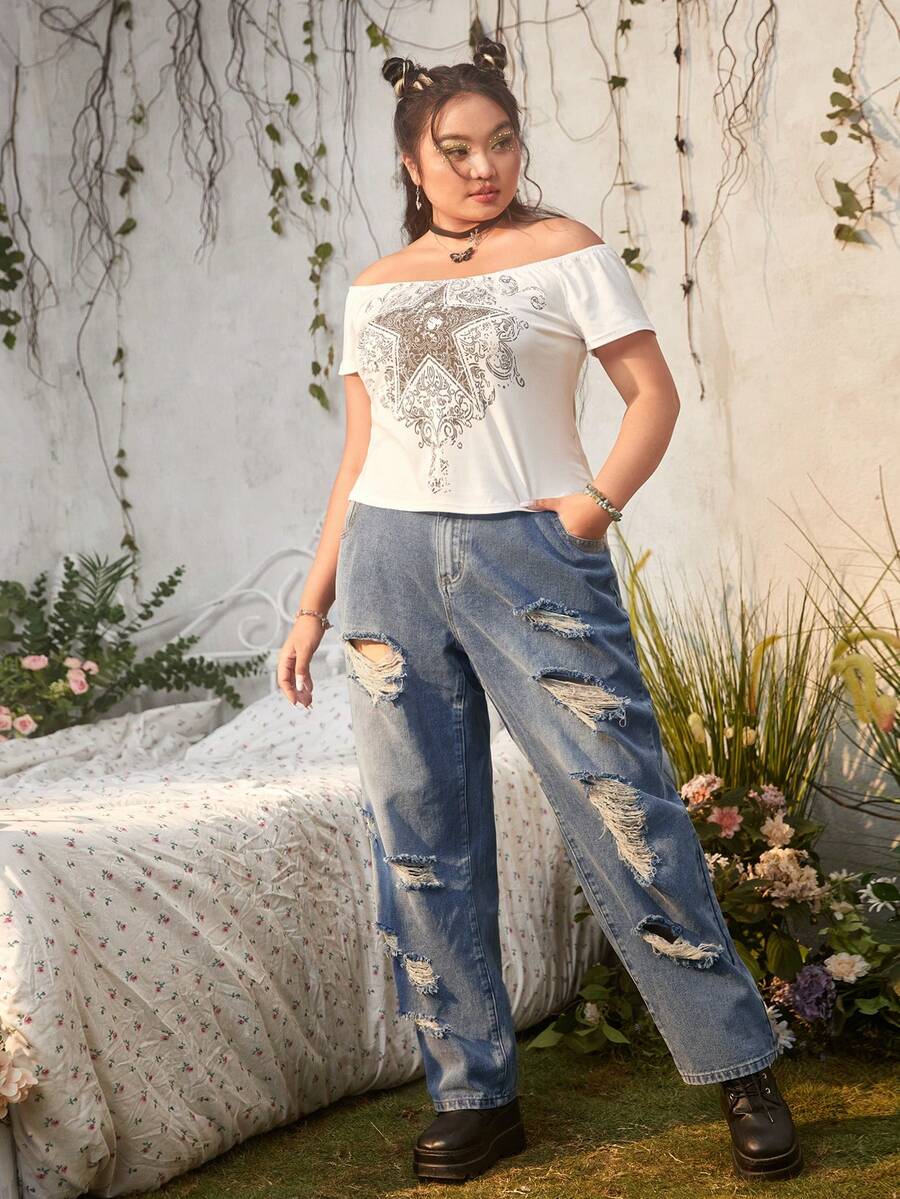 Fairycore Plus Ripped Straight Leg Jeans