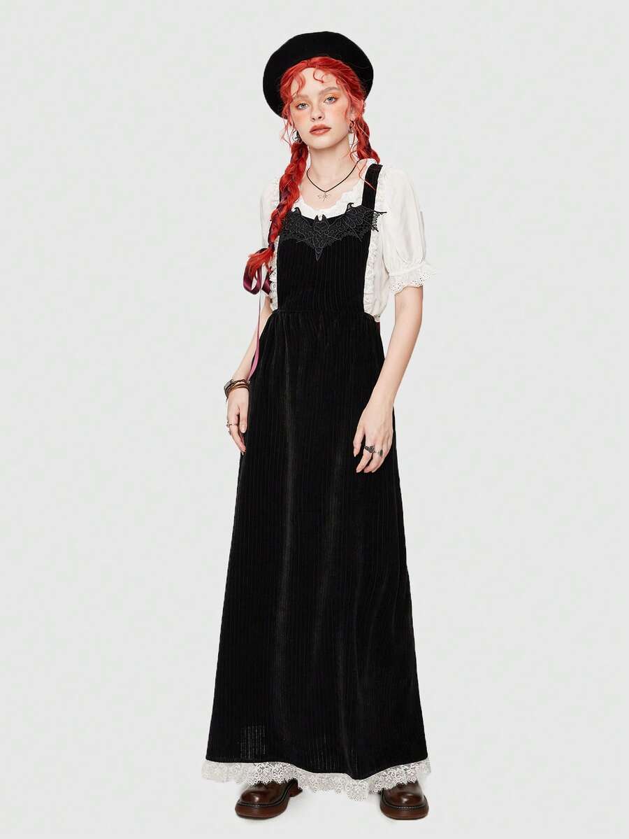 Fairycore Solid Bat Appliques Overall Dress Without Blouse